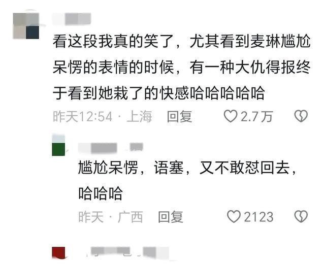 许多网友齐以为麦琳是个"PUA高东说念主",在节目里"又当又立"。她名义上看起来很谦善,执行上却无出其右,把我方包装成受害者,这种作念法实在是让东说念主难以汲取。正如有网友所说,"东说念主前一套,背后一套",这种造作的气派,无疑加深了全球对她的反心扉绪。