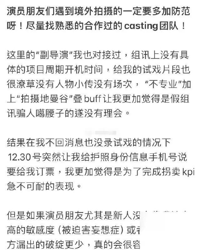 颜十六恰是看到了王星的这种弊端,收拢他对演艺行状渴慕这个致命的点,设下了一个全心筹谋的罗网。他用充满劝诱的语言刻画了一些看似好意思好的演艺远景,比如可能会接到外洋有名导演的大制作电影,能够和一线明星配合等等。同期,他又用挟制的妙技,让王星堕入了一种无法间隔的境地。在这种欺骗之下,王星最终屈服了,他就这样踏上了前去泰国拍摄的不归路,然后便玄妙失散了。