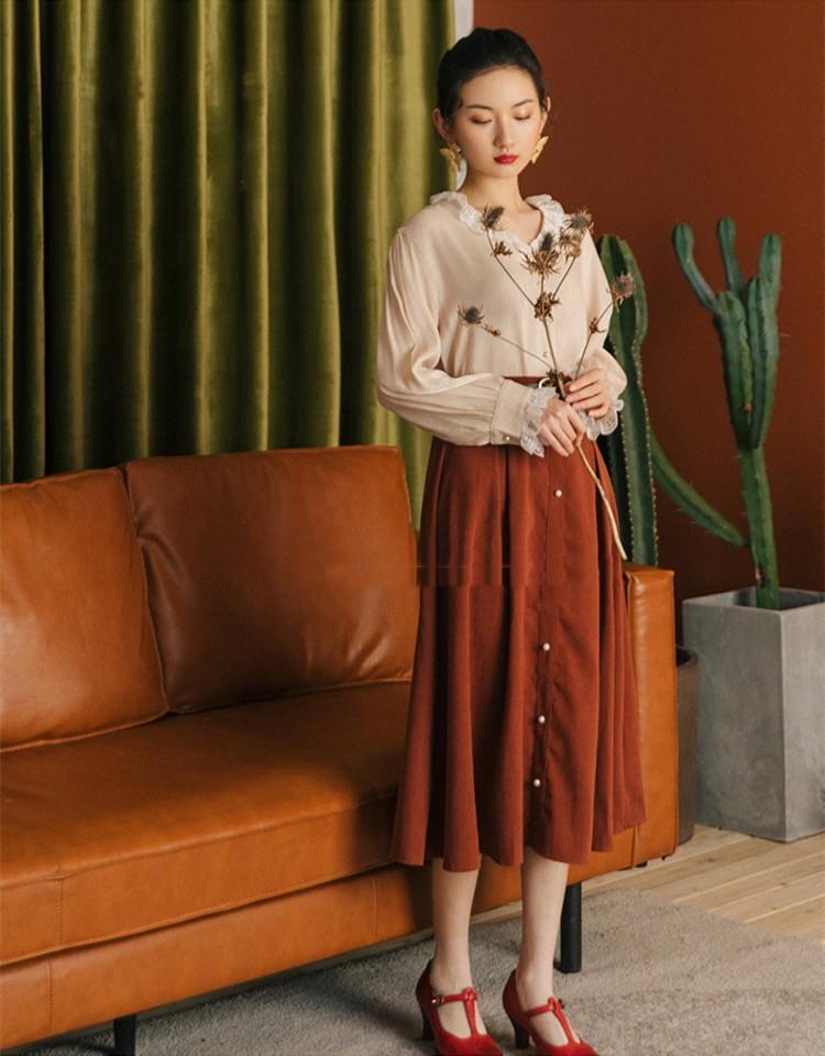 搭配上半身裙 在搭配衬衫时,可以汲取一条半身裙来加多女性化的气味。相貌上可以汲取与衬衫造成一定对比度的相貌,如深蓝色、玄色、紫色等,这么可以让统统搭配更有眉目感。